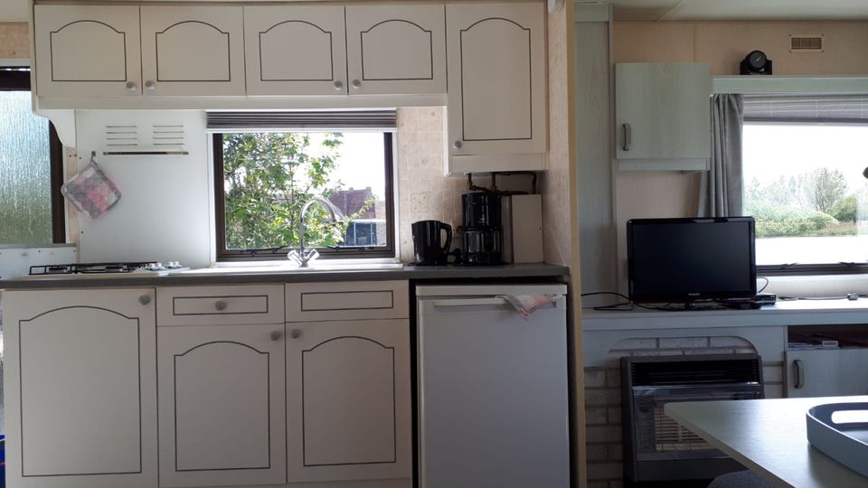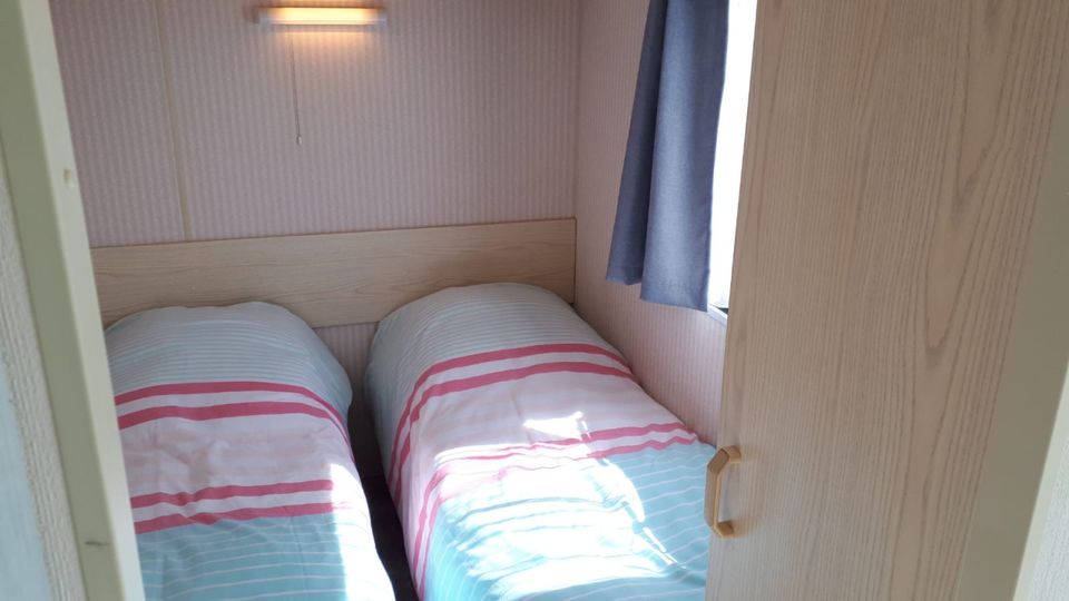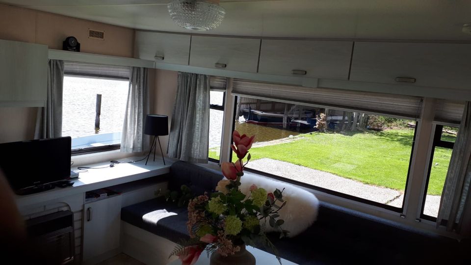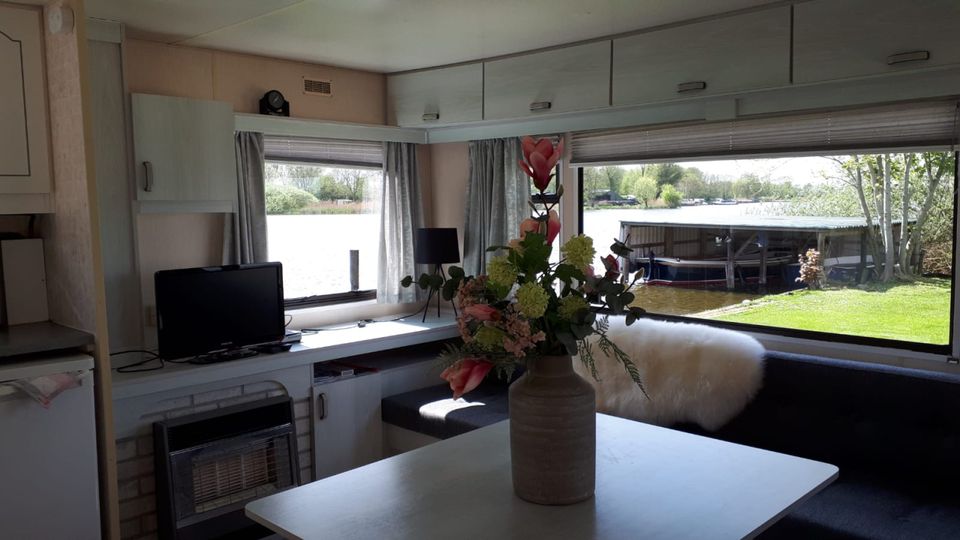 Comfortabele stacaravan gelegen aan het vis- en vaarwater op een gezellige camping. De woonkamer is ruim opgezet en er komt veel licht naar binnen. Daarnaast heeft de woonkamer een open keuken met uitzicht over het water. De keuken beschikt over onder andere een koelkast, koffiezetapparaat, magnetron en vriezer. Er zijn 2 slaapkamers, waarvan 1 kamer met een tweepersoonsbed en 1 kamer met twee eenpersoonsbedden. Er bevindt zich een badkamer met wastafel, douche en toilet. De stacaravan is voorzien van koud en warm stromend water. Buiten kun je heerlijk genieten op het eigen terras aan het water.