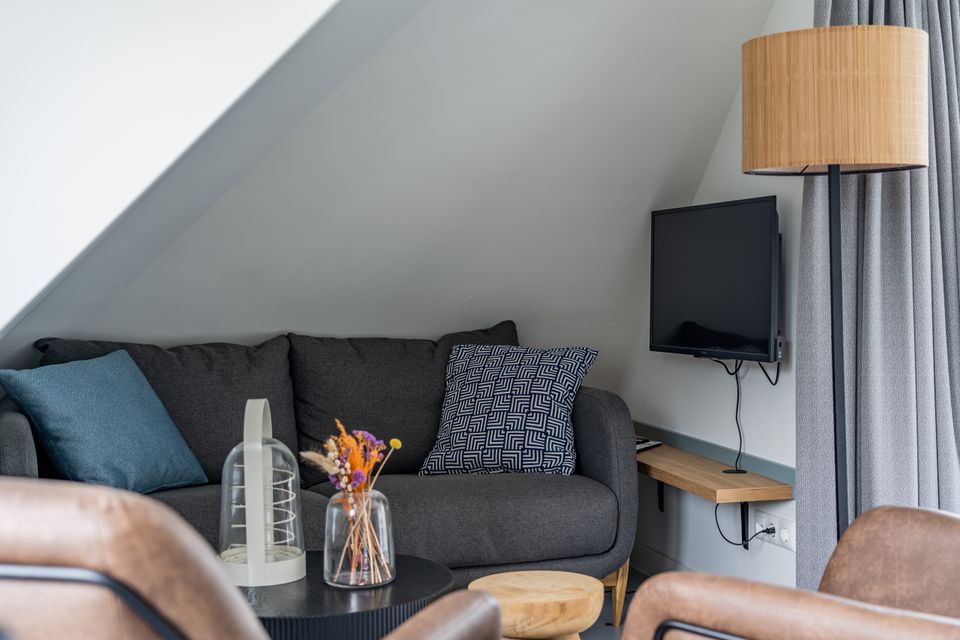 Geniet vanaf het balkon, uitgerust met meubilair, van een schitterend uitzicht over het Sneekermeer! Dit vierpersoons appartement is gelegen op de eerste etage van het complex. Via een vaste trap kom je bij de grote voordeur vanwaar je het appartement binnenstapt. Bij binnenkomst loop je langs een badkamer met douche, toilet en wastafel en langs de eerste slaapkamer met eveneens prachtig uitzicht en twee eenpersoons boxspringbedden. Vervolgens stap je de open woonruimte binnen met keuken, eet- en zithoek. De keuken is van alle gemakken voorzien en heeft een losse koelkast. Er is een ruime eethoek en knusse zithoek. Via de trap loop je naar boven waar de tweede slaapruimte is gecreëerd. Deze is niet met een deur af te sluiten. Deze slaapruimte beschikt eveneens over twee eenpersoons boxspringbedden en daarnaast vind je op deze verdieping nog een extra toilet en een wasmachine.