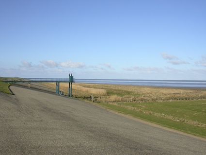 Je zag de typisch blauwe kleur waarschijnlijk al van verre: het dak van het zeegemaal dat hier sinds 1973 staat en genoemd is naar waterschapsvoorzitter Henk Miedema. Dit gemaal kan tot 700 kubieke meter per minuut water vanuit de vaart in zee lozen. Als je hier even blijft staan, kun je zomaar het gemaal horen aanslaan, want die schakelt automatisch in.
