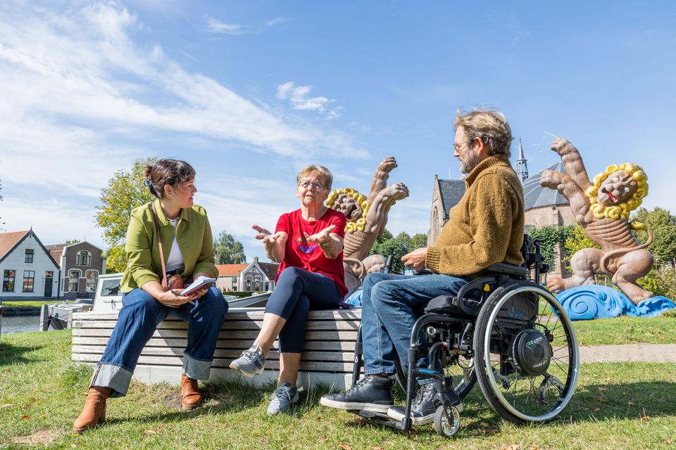 De buurtjes halen de schouders op. Gerben: “Volgens mij was het hier altijd al wel druk, dus qua bezoek is er niet veel veranderd. Mensen bezoeken de fontein als onderdeel van hun Elfstedentocht, maar die tocht zouden ze zonder de fonteinen ook wel doen.” Jannie draait zich om richting de fontein en wijst naar de leeuwen. “Hier was eerst helemaal geen haven, dus dat is enorm veranderd. Er stond een oud gemeenschapscentrum. Dat hebben ze weggedaan, maar dat kon ook niet meer hoor, zo oud.”