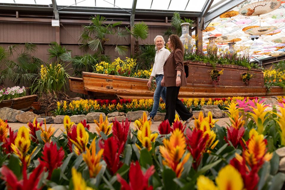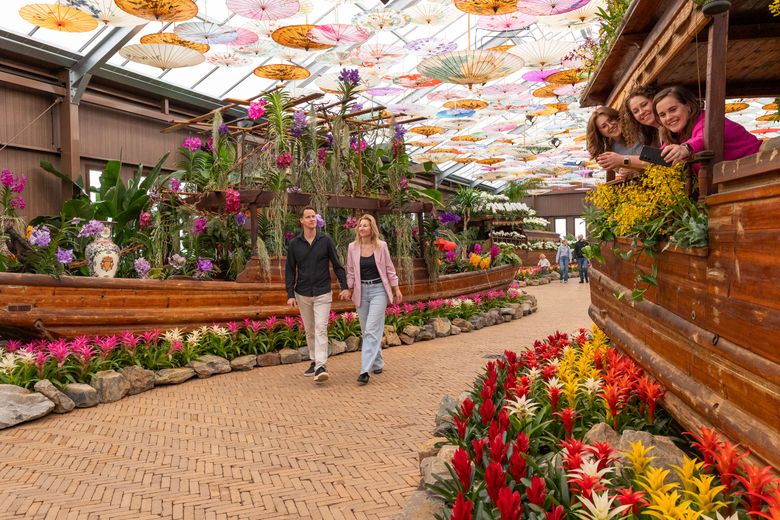 Tien weken lang slingert door de Orangerie een kleurrijke rivier van duizenden Bromelia’s en Guzmania’s langs tientallen Aziatische sampanboten. Deze boten vormen samen een betoverend decor én het podium voor indrukwekkende orchideeënarrangementen. Zo stroomt de indrukwekkende Cascade-orchidee als een roze waterval over vijf gestapelde boten, schittert een boot vol juweelorchideeën als een fonkelende schatkist en lijken sierlijke Vanda’s met hun karakteristieke luchtwortels bijna boven de bloemenrivier te zweven.