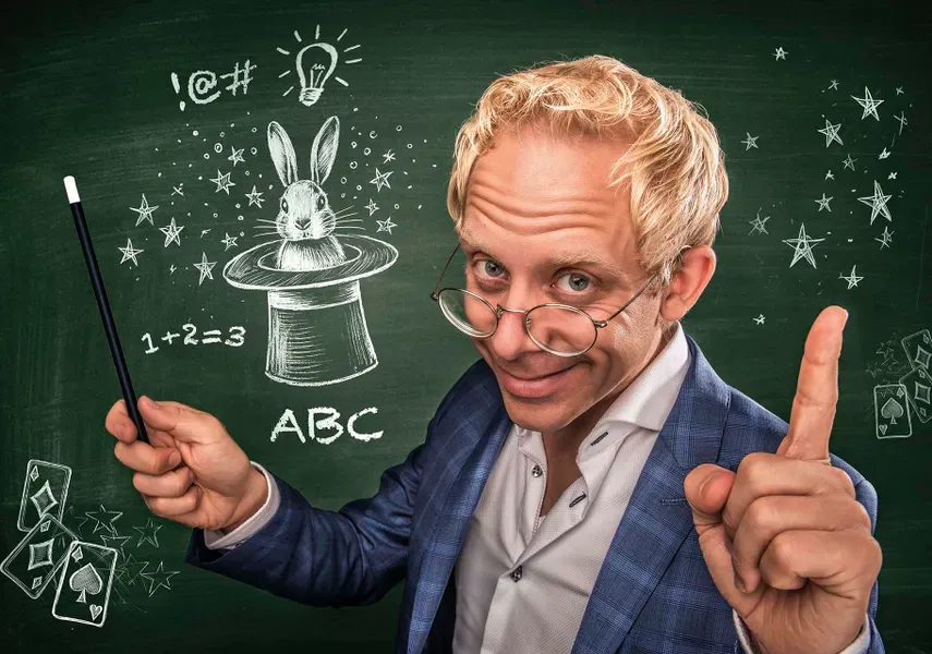 Meester Huub, voormalig Nederlands kampioen jongleren en bekroond kindergoochelaar, belandt op een mysterieuze nieuwe school. Tijdens het lesgeven ontdekt hij dat er iets bijzonders aan de klas is. In deze magische familievoorstelling neemt hij het publiek mee in een avontuur vol trucs, humor, jongleren en verrassende effecten.
