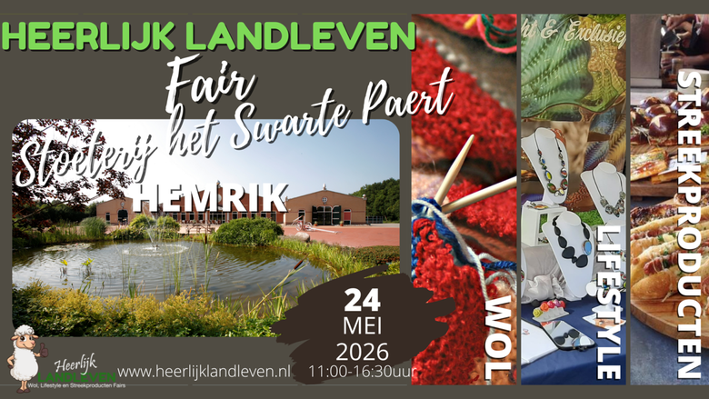 Op zondag 24 mei (1e Pinksterdag) vindt op een prachtige nieuwe locatie de Heerlijk Landleven Fair in Hemrik plaats. In samenwerking met Stoeterij “Het Swarte Paert” belooft het een sfeervolle dag te worden voor jong en oud.