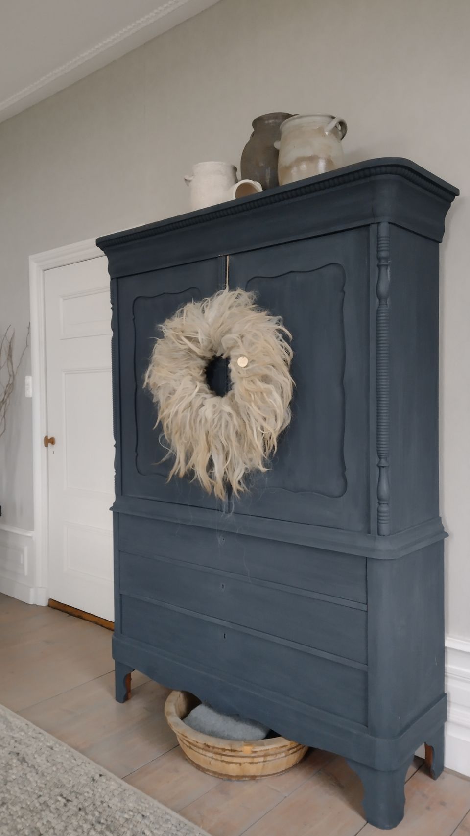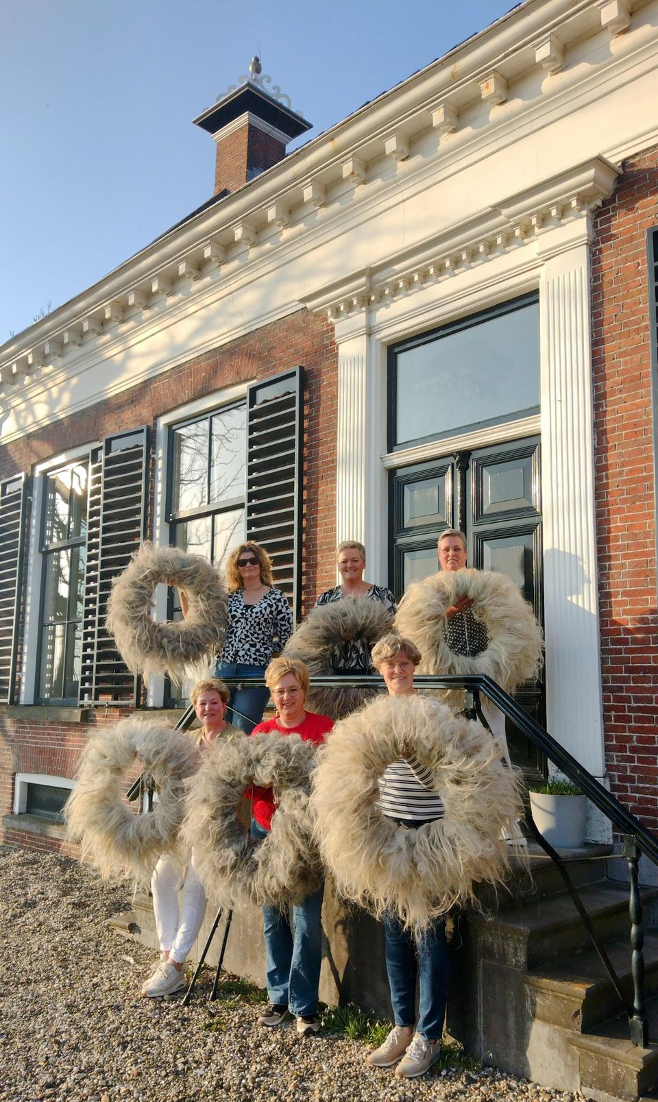 Voor de krans gebruiken we, voor het mooiste resultaat, zachte handgewassen langharige wol met krullen (kleur naar keuze).ย