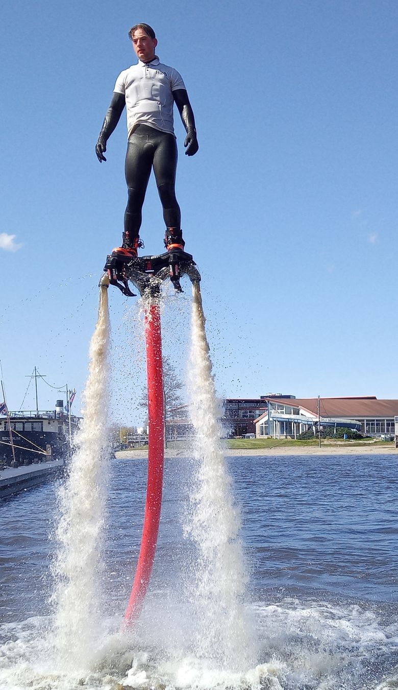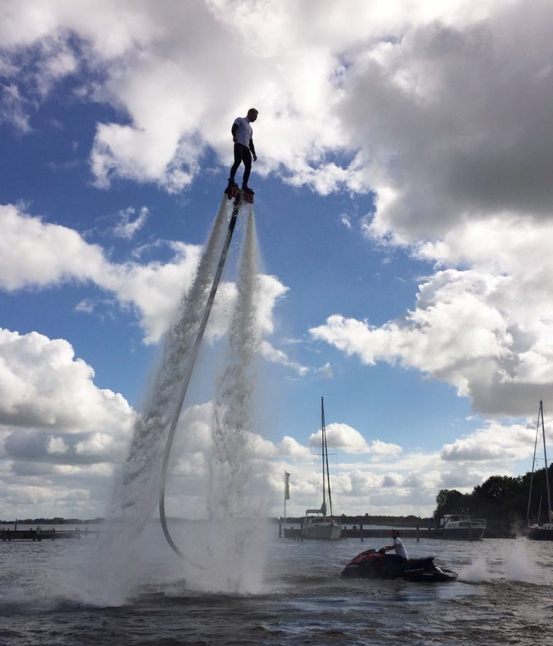 Vliegen als een vogel en duiken als een dolfijn. Ervaar het spektakel van flyboarden bij Flyboardclinic.nl in Heeg.