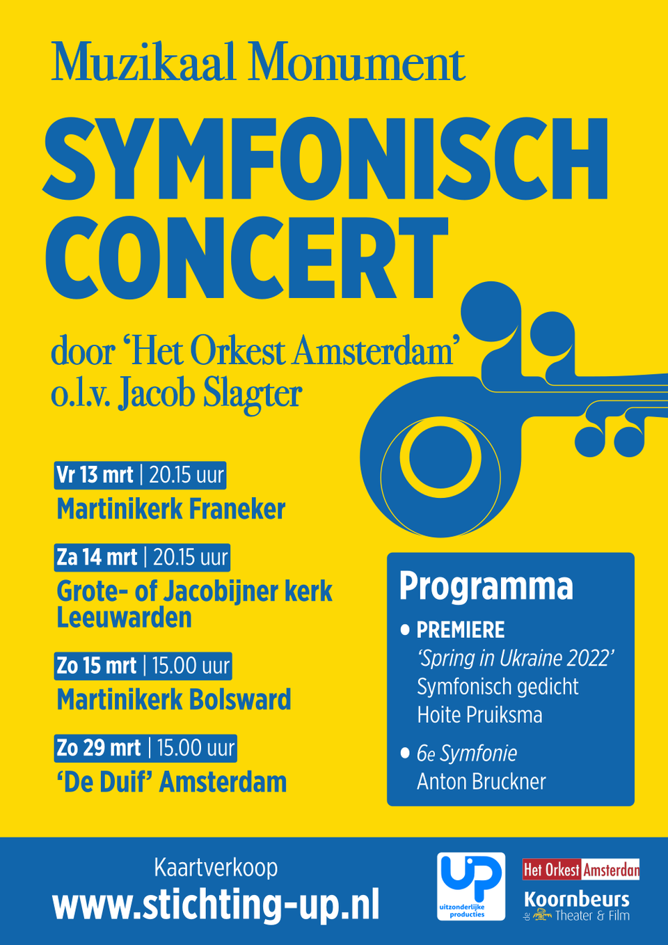 Muzikaal Monument * Spring in Ukraine 2022’ – symfonisch gedicht Hoite Pruiksma * 6de symfonie Anton Bruckner 'Het Orkest Amsterdam' o.l.v. Jacob Slagter ‘Spring in Ukraine 2022’ Hoite Prui...