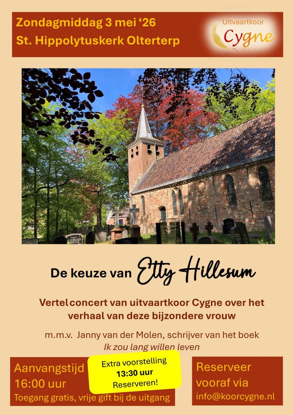 De keuze van Etty Hillesum Vertelconcert met uitvaartkoor Cygne en Janny van der Molen In dit vertelconcert staat centraal: het verhaal van Etty Hillesum, verteld door Janny van der Molen, schrijver van het boek Ik zou lang willen leve...