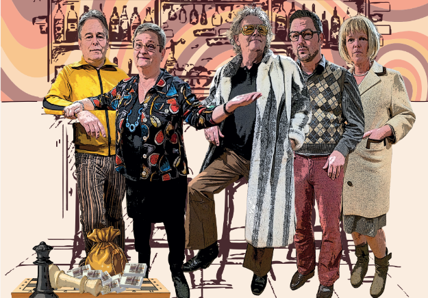 De setting is een doodgewone kroeg in de jaren ‘70. De bingo is er belangrijker dan de boekhouding. Een dichteres met een tong als een scheermes en een weemoedige schilder zijn er elke dag te vinden. Maar dan komt er onverwacht bezoek. Een man die alles overhoop haalt en een vrouw die de situatie op scherp zet. Welkom in een kroeg waar de alcohol vloeit en de klanten van alles in hun schild voeren. Een plek waar geld een vreemde rol speelt en niemand te vertrouwen is. Wie is er aan zet? Wie zet wie schaakmat?