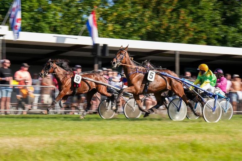 Paardenraces op het gras van Joure. Sport, spanning en spektakel op de Nutsbaan van Joure.