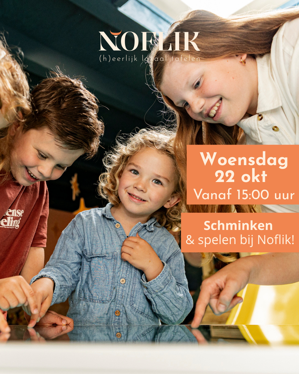 In de herfstvakantie op woensdag 22 oktober organiseert Noflik een leuke speelmiddag met schminken in ons nieuwe kinderspeelparadijs.