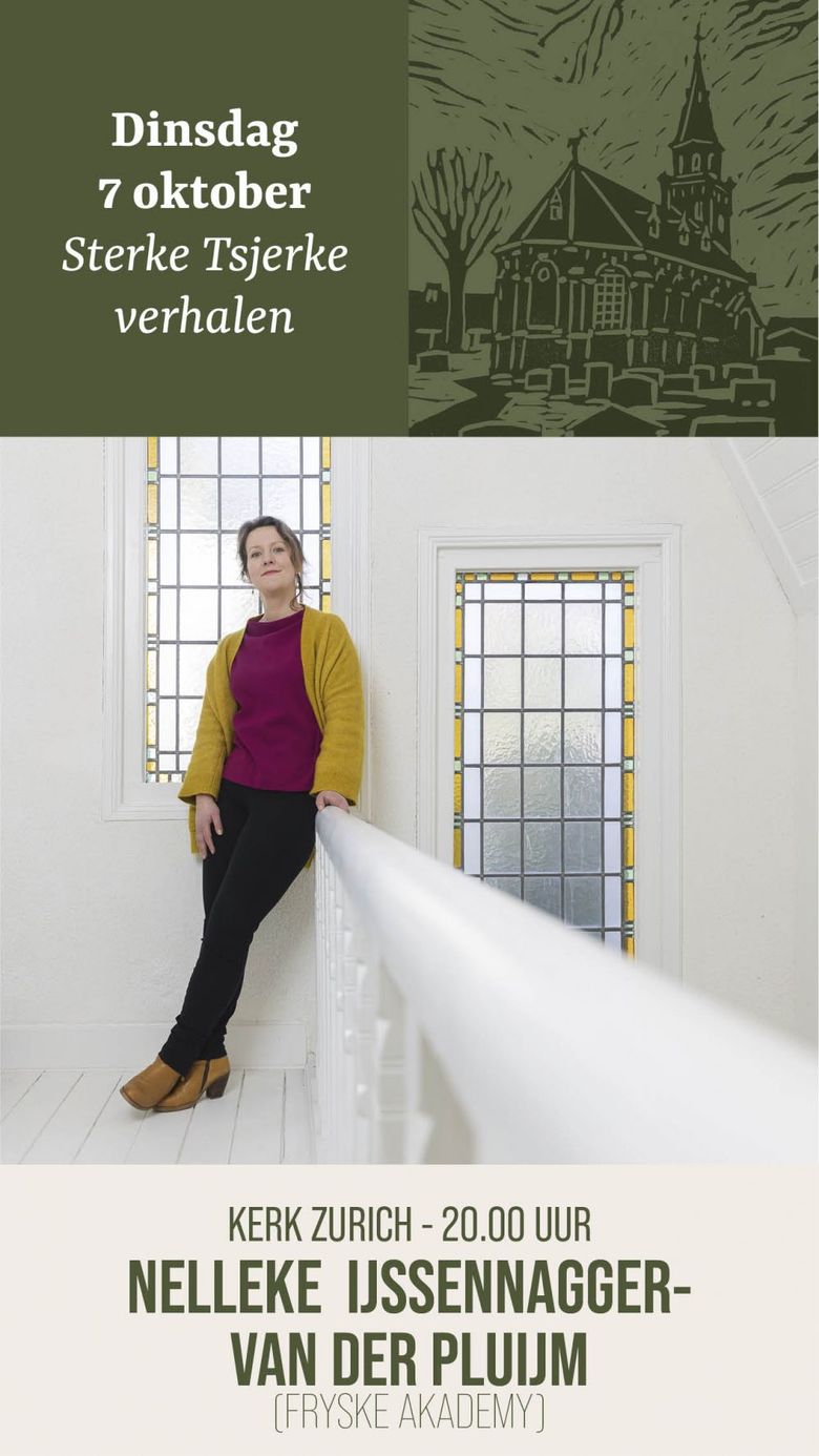 Na drie Sterke Tsjerke-verhalen avonden in september is tot slot op 7 oktober de laatste avond. In het het kerkje van Zurich is niemand minder dan Nelleke IJssennagger-van der Pluijm aan het woord, directeur van de Fryske Akademy.