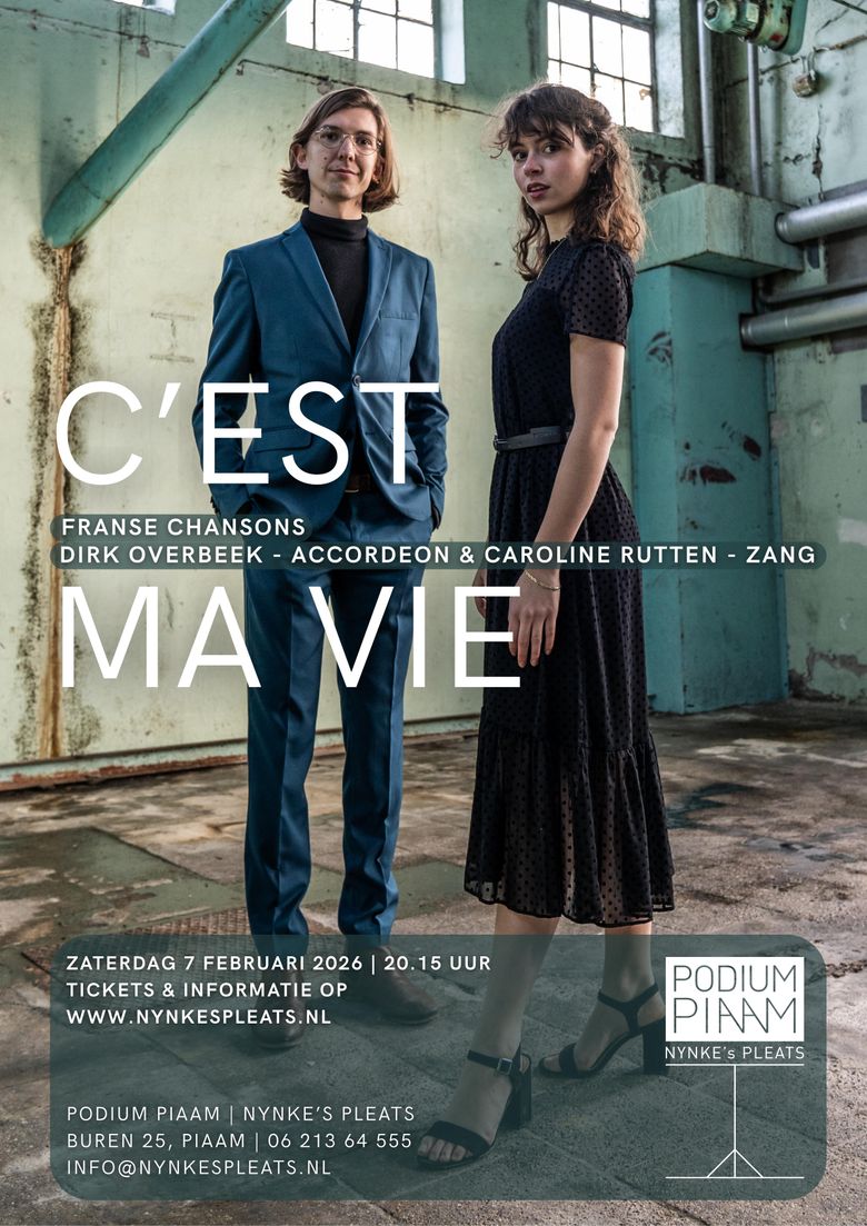 Zangeres Caroline Rutten en accordeonist Dirk Overbeek kennen elkaar al sinds de vooropleiding van het conservatorium in Arnhem. Mede door de gezamenlijke liefde voor het chanson ontstond daar een hechte vriendschap. Haarscherp op elkaar ingespeeld vertolken zij met veel plezier de mooiste liederen. Op 7 februari 2026 staan ze op Podium Piaam in de prachtige ambiance van boerderij Nynke's Pleats.