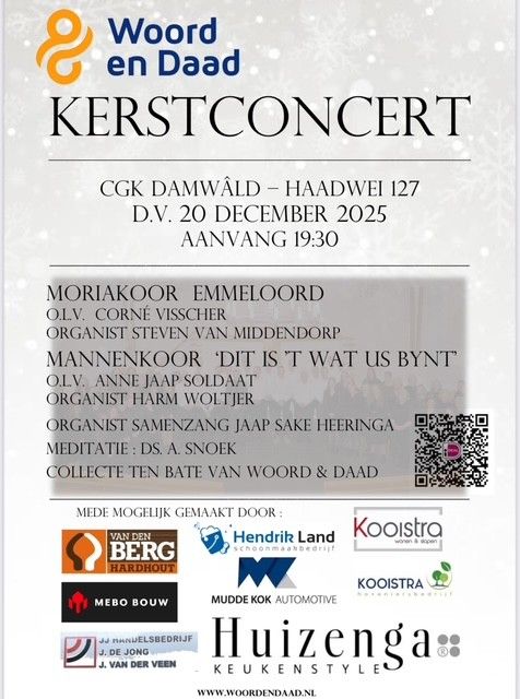 Op D.V. 20 december 2025 is er een Kerstconcert in de Christelijk Gereformeerde kerk, Haadwei 127 te Damwâld.