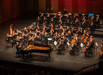 Solist van deze middag is de jonge pianiste Sanne Doorduin. Zij is een Noordelijk pianotalent en won in 2026 de Gerard van der Weerd solistenprijs. Samen met het orkest brengt zij een bijzonder moment in het programma.