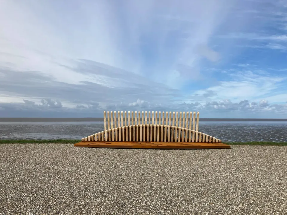 Sense of Place is een kunstproject langs de Waddenkust waar kunstenaars samen met bewoners werken aan nieuwe landschapskunst. Geen beelden op een sokkel, maar ingrepen die het gebied zelf laten spreken. Langs de dijk schuurt het tegen de klei en kijkt het uit over zee. Je fietst erlangs, stapt af en voelt hoe kunst, water en horizon in elkaar overlopen.